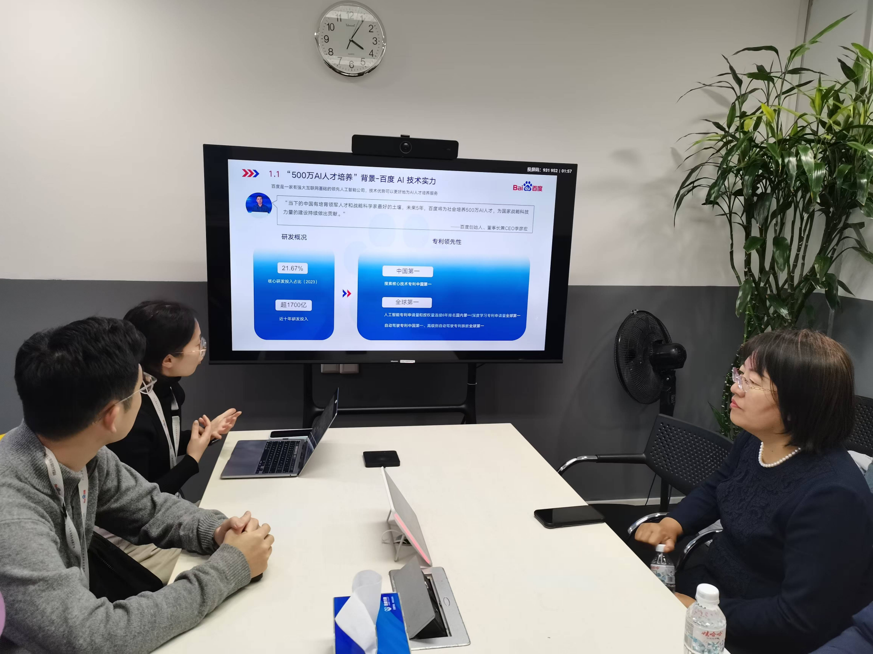 参访老师率先体验了前沿科技魅力 —— 无人驾驶汽车乘坐。当车辆平稳而精准地穿梭在既定路线,依据百度大厦行人和弯道的路况自动做出驾驶决策时,老师们真切感受到数学与统计学在人工智能领域的深度应用,背后海量的数据采集、精准的算法模型搭建,无一不是统计学科知识转化为实际生产力的有力例证,让老师对所学专业的广阔前景有了具象认知。