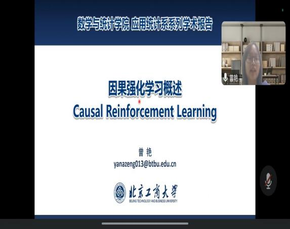 10月25日,本学期应用统计系学术沙龙活动的第三场报告如期开展。应用统计系曾艳老师作题为“因果强化学习概述”的学术报告,报告由应用统计系副主任陈星玎教授主持。