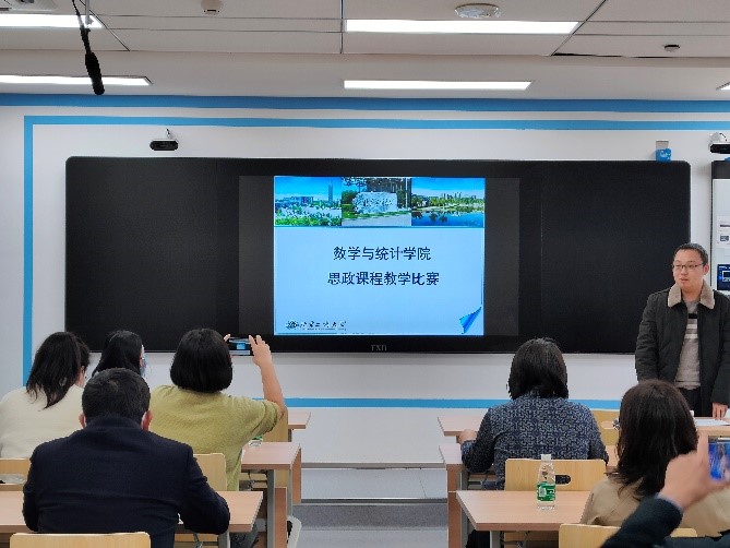 6位参赛教师根据所授专业课程特点,结合课程蕴含的思想政治教育元素,分别进行了十五分钟的课程展示。6门课程分别涵盖了数理统计、微积分、数学分析、量子科学、应用统计学等,教师们结合所授专业的课程特点,将国家政策、时事政治、家国情怀、哲学方法、职业素养等思政元素自然的融入到课程中,体现了各位教师良好的政治素养与参与课程思政教学改革的踏实工作作风。