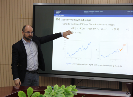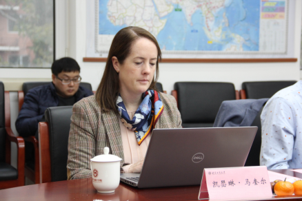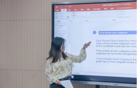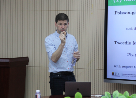 教师代表就各自主攻的研究领域作展示。来自考克大学的科纳尔·凯利老师率先汇报,其汇报内容涵盖了随机模型的计算方法在金融和生物学的应用,以及随机微分方程的前沿探索。紧接着,艾瑞克·沃斯坦斯奇老师向大家介绍了考克大学数学公司在数学系统计学课程中所开展的三个项目:保险定价、基于生物体的m-RNA数据确定前列腺癌复发的风险的应用以及关于对四维医学影像数据的分析。随后,数据科学系的刘思妍老师详细介绍了公司数据科学与大数据专业的培养方案。她从课程设置、实践教学、团队队伍等多个方面进行了全面阐述,展示该专业在培养具备扎实数据科学基础知识和实践能力的复合型人才方面的努力和成果。同时,刘思妍老师还分享了她在图论方向研究的最新成果。最后,吴鹏老师做因果推断、可信人工智能和以及因果推荐系统研究分享。与会教师就汇报内容展开深入的交流探讨,在汇报过程中提出了许多富有洞见的观点,并达成共识,表达对两校未来进行更多研究合作的美好愿望。