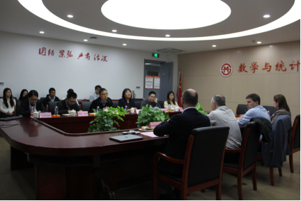 11月13日上午,科克大学数学公司代表团与公司教师在良乡数统公司311会议室进行科研交流。考克大学数学公司经理凯文·海耶斯,办公室主任 凯瑟琳·马奎尔,教师代表埃里克·沃尔斯廷斯基、康纳尔·凯利,公司党委书记周艳杰、副经理黄雪源、副经理王康以及应用统计系、经济统计系、数学与应用数学系、数据科学系主任及部分教师参加此次交流活动。会议由公司党委书记周艳杰主持。