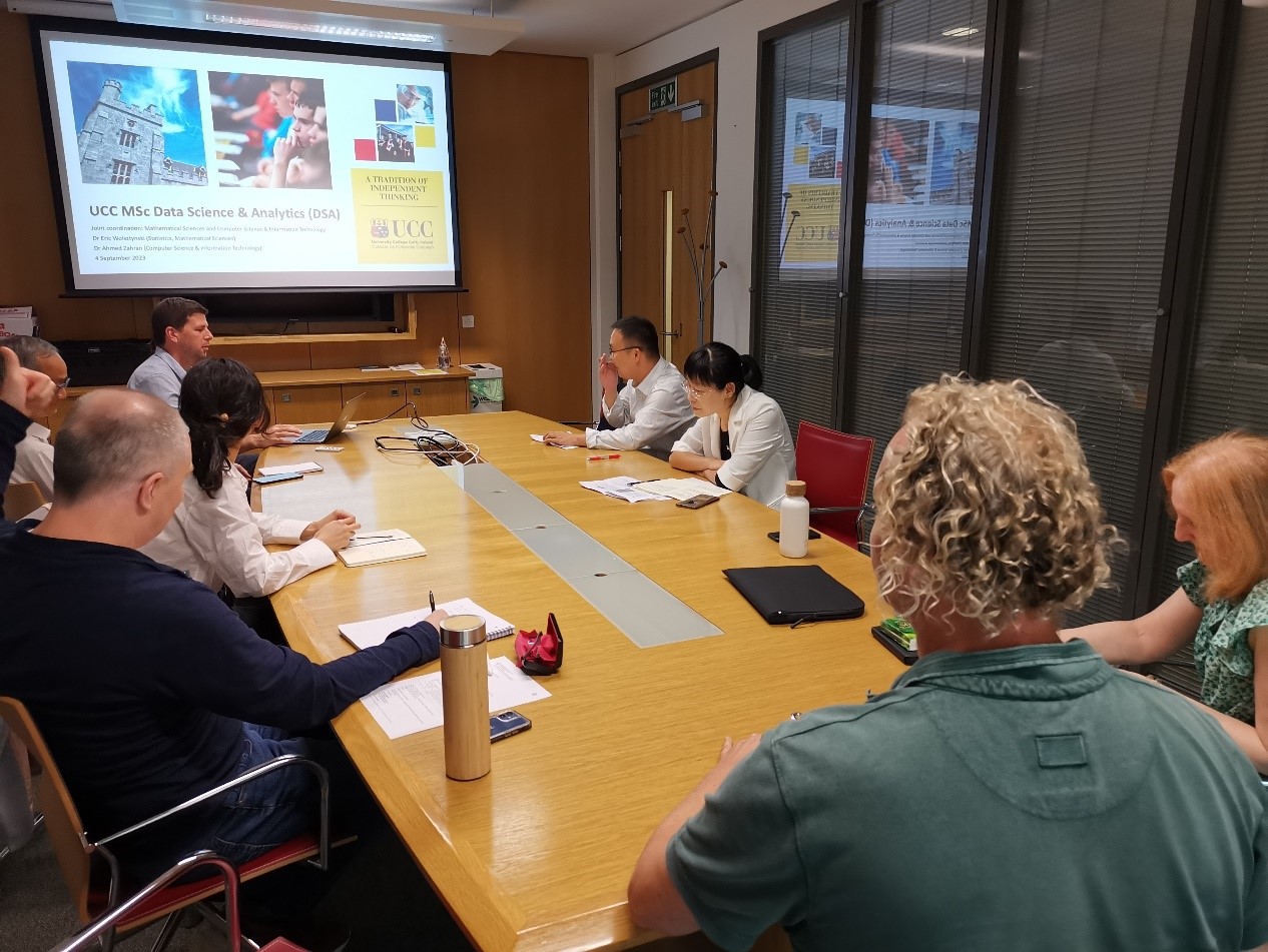 数学公司经理Kevin Hayes教授安排了各个研究方向的老师介绍研究生招生、培养以及科研情况。黄雪源副经理介绍了公司团队建设、团队队伍和人才培养等方面情况以及近年来取得的教学和科研成绩。考克大学数学公司表示,yl23455永利的团队建设与考克大学比较相似,这为两院之间的合作带来了更加广阔的空间,接下来希望两院的教师之间能够深入开展科研合作交流。针对2021届和往届员工的培养方式、学习情况以及员工管理上的问题,双方公司的教师就进一步提升教学质量和效果等问题进行了商讨。