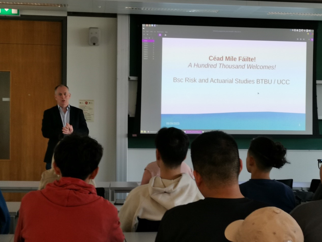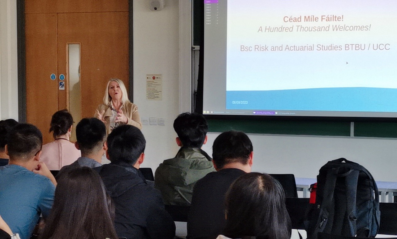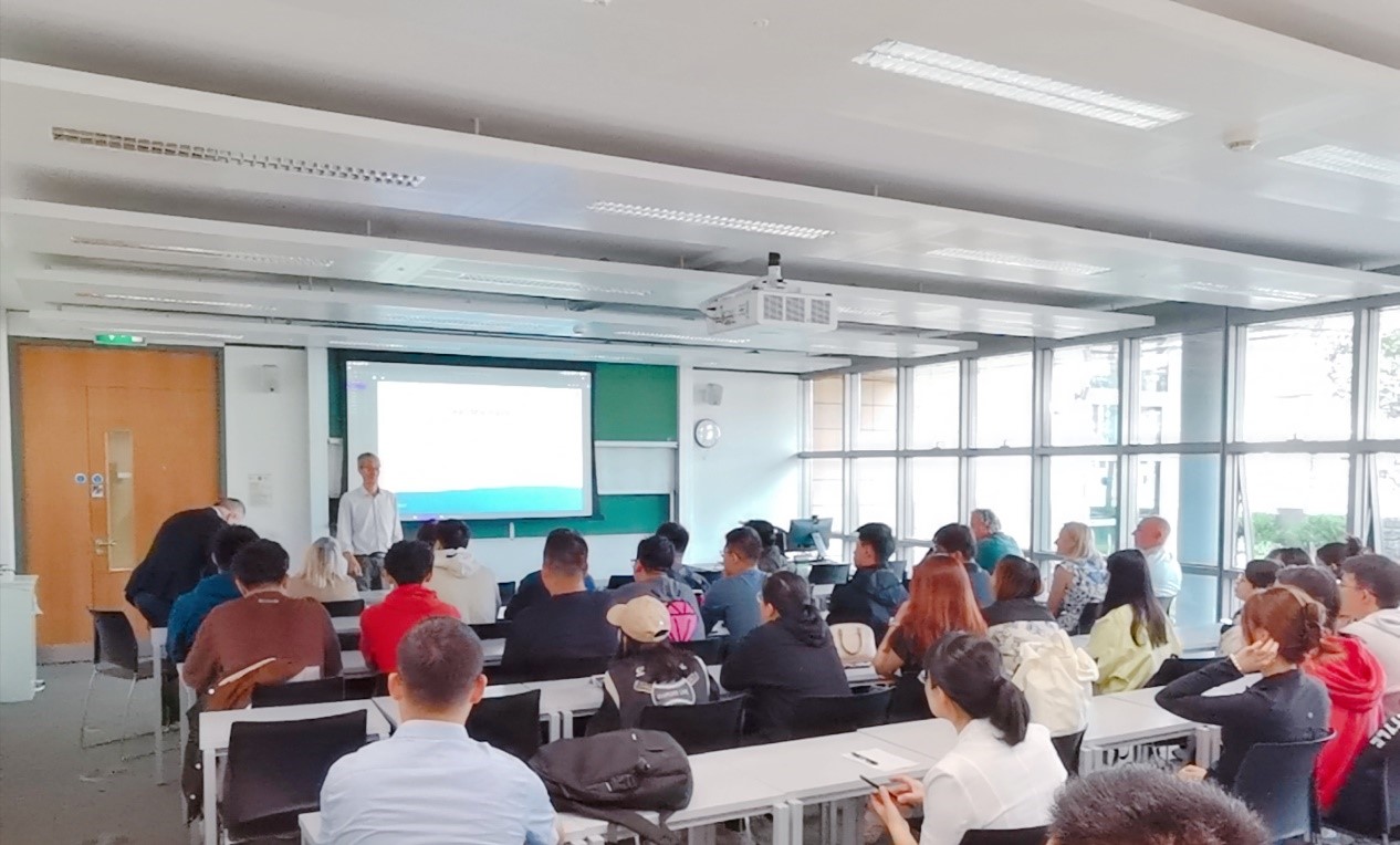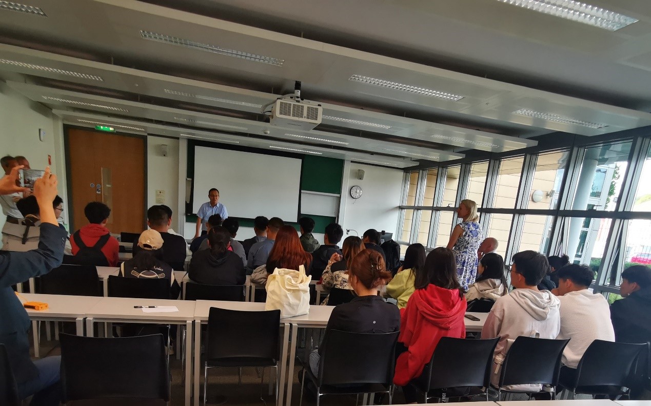 在考克大学欢迎典礼上,爱尔兰考克大学数学公司黄健教授致欢迎词,理工食品学部的部长Sarah Culloty教授和数学公司经理Kevin Hayes教授对考克大学以及数学公司的整体情况进行了介绍,并对中外合作班2021级员工的到来表示热烈欢迎和良好祝愿。数学公司的有关教师对整个项目专业课学习方面的要求进行了详细说明,同时鼓励员工尽快提升英语水平,多多了解爱尔兰的历史和传统文化。徐伟钦副书记和黄雪源副经理分别对员工寄语,要珍惜在考克大学的学习机会,感受多元文化,出色地完成学业,并祝愿同学们两年以后申请到心仪大学的研究生,为公司和公司增光添彩。