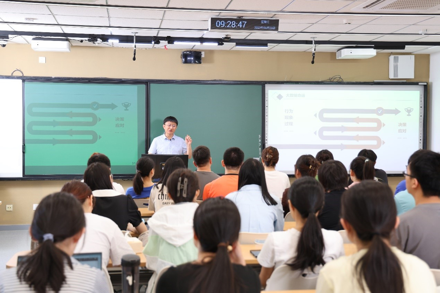 郭建华深入剖析了应对策略和大数据模型,强调了可视化分析在数据呈现和传播中的重要性。他结合当下的时政热点事件,探讨了不同实践领域中的统计问题,如公共安全、医疗保健、金融风险等,为师生们拓展了研究视野。此外,他分享了一些最新研究成果,介绍了前沿的统计学理论和方法,指出,统计学作为一门不断发展的学科,需要与时俱进,不断探索新的领域和应用,并引用了一些创新的案例,如利用机器学习算法预测大事件发生趋势、社交媒体数据分析等,展示了统计学在面对现实挑战时的应用前景。