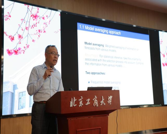邹国华教授作题为“Robust Jackknife Model Averaging”的报告,介绍了一种面向均值回归的鲁棒jackknife模型平均方法(RJMA),通过引入鲁棒损失函数和权重选择准则,有效缓解了异常值对模型选择和预测性能的干扰。