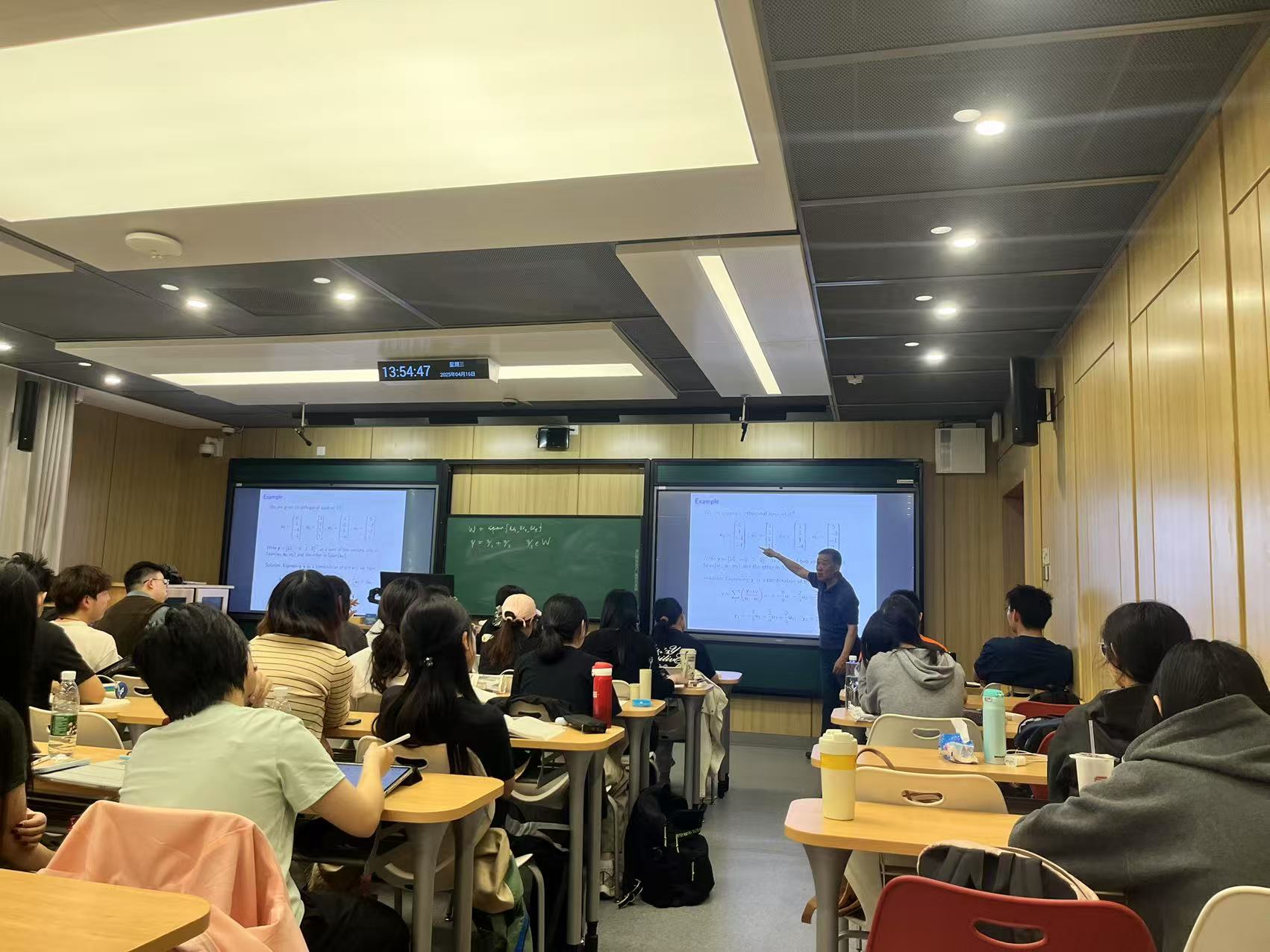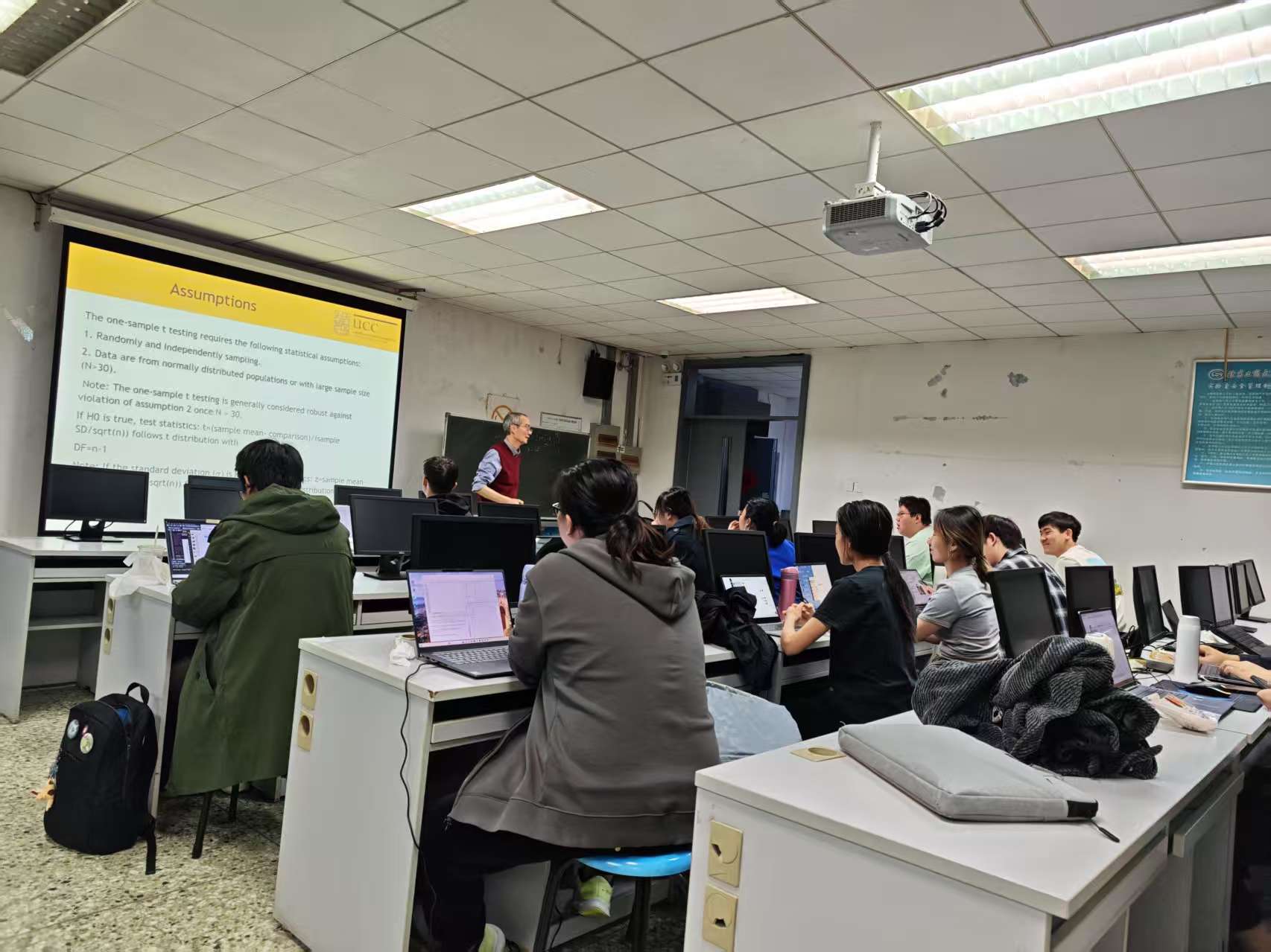 此外,爱尔兰科克大学数学科学公司黄健教授于4月9日至5月8日为2023级中外班员工讲授专业必修课《数学建模与实验》课程。4月8日至18日,澳大利亚墨尔本老员工物统计学专业副教授Agus Salim为该班讲授专业核心课《数理统计》。三位专家还共同参与了多次师生交流活动并为2024级中外班员工开展专题学术讲座。